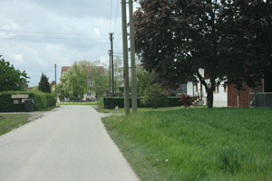Nach ca. 100 m vor dem Wald rechts in die 50er Zone abbiegen.